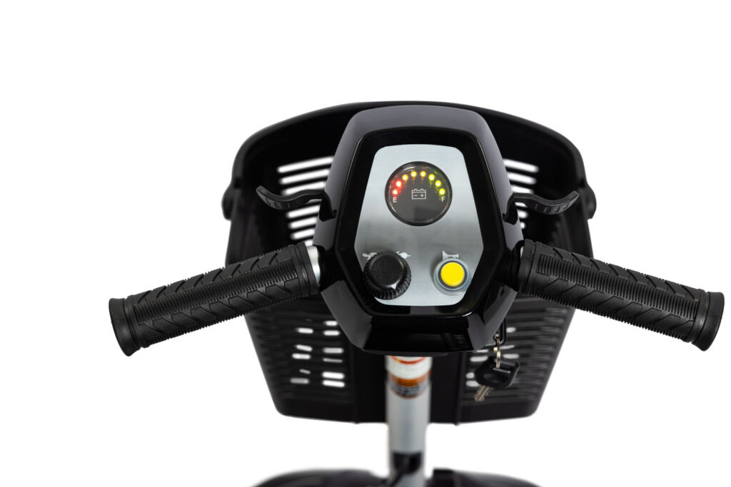 The NOMAD mobility scooter offers a lightweight, compact design perfect for ease of use and transportation. Made from durable aircraft aluminum, its heaviest component weighs only 20 lbs. It features a powerful airline-approved lithium battery with a 260 lb. weight capacity, providing a range of 7-10 miles per charge. The scooter is designed for ultimate comfort with a padded seat, full suspension, and adjustable armrests. It also boasts a 360° swivel seat for easy mounting and dismounting, plus a tight 49″ turning radius for great maneuverability. Ideal for travel, it disassembles quickly for easy storage and transport.